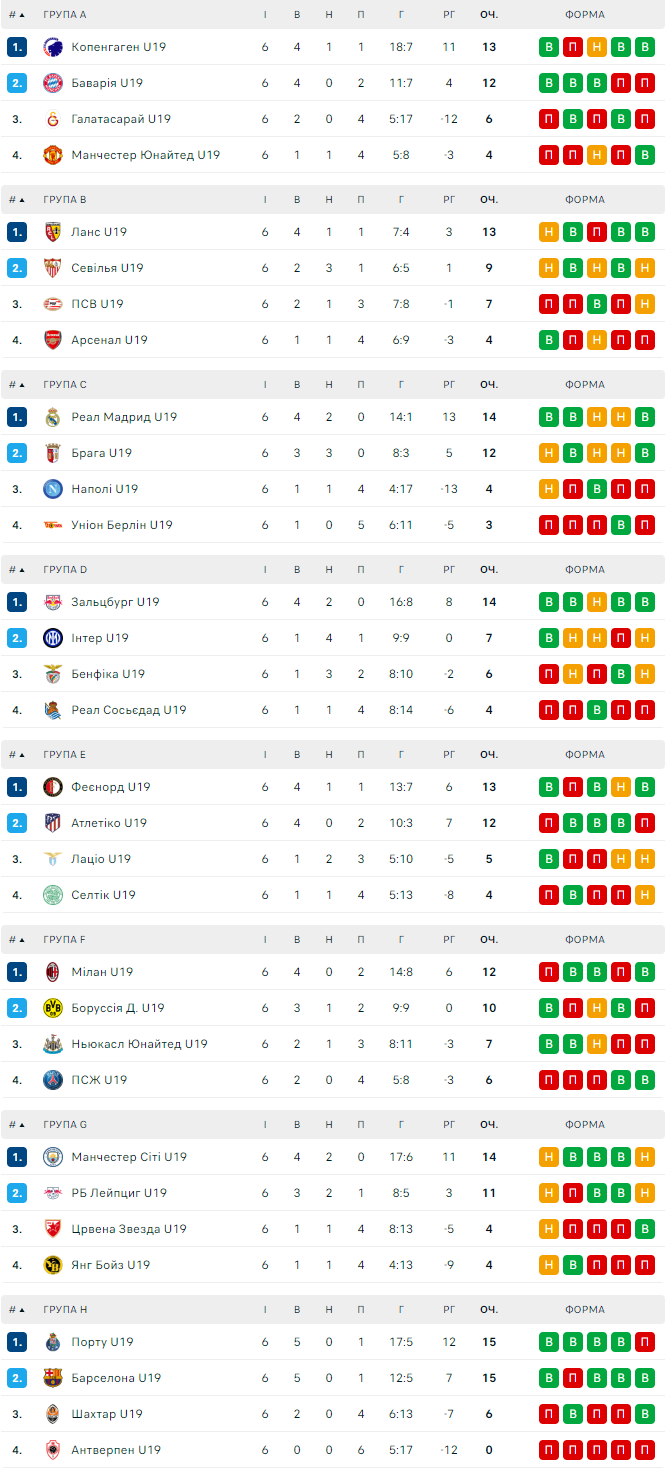 Юнацька ліга УЄФА. Підсумки групового раунду. Хто вийшов у плей-оф?