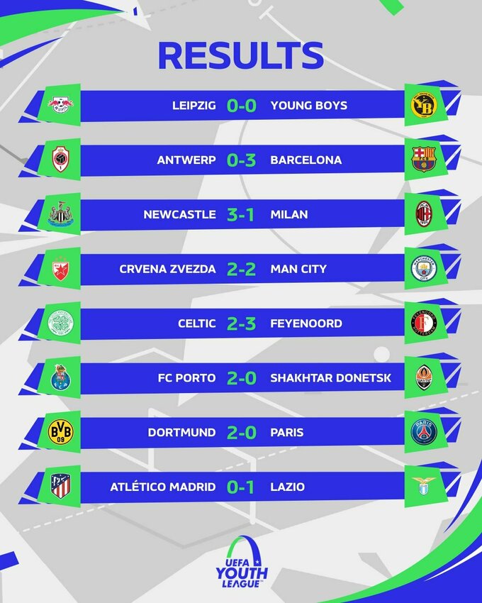- Ньюкасл U19 – Мілан U19 – 3:1