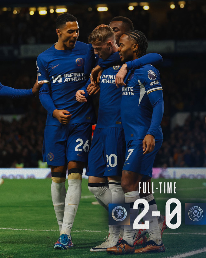Лондонський «Челсі» перервав двоматчеву серію поразок, обігравши на власному полі «Шеффілд Юнайтед». Голи за лондонців забивали Коул Палмер та Ніколас Джексон. У стартовому складі «пенсіонерів» також з'явився Михайло Мудрик, який відіграв 69 хвилин та був замінений.