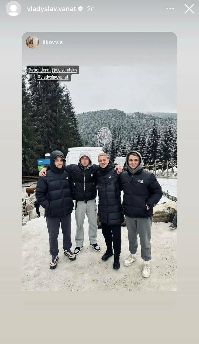 Нападник «Динамо» Владислав Ванат вирушив до Буковеля, де проводить час у компанії друзів дитинства. Один із них поділився фото в соцмережах.