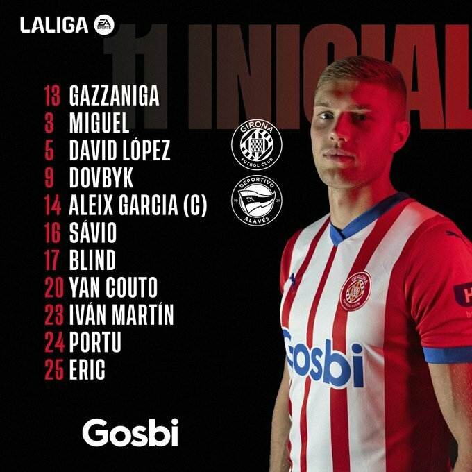 «Жирона»: Гассаніга – Гутьєррес, Блінд, Д. Лопес (Хуанпе, 79), Е. Гарсія, Коуту (Арнау, 79) – Савіо (Валері, 64), А. Гарсія, Мартін (Соліс, 73), Порту (Торре, 64) – Довбик.