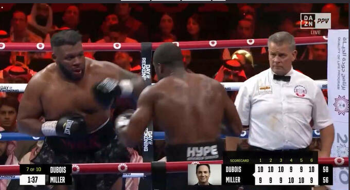 20:50. Наступним буде 10-раундовий бій: Деніел Дюбуа (Великобританія, 19–2, 18 KO) – Джарелл Міллер (США, 26–0–1, 22 KO)