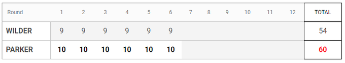 00:25. Екватор бою. Спеціалисти BoxingScene впевнені, що всі 6 раундів виграв Паркер (60–54)