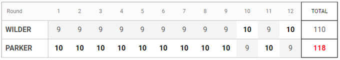 00:54. Усі судді віддали перевагу Паркеру із розгромним рахунком: 118–111, 118–110, 120–108