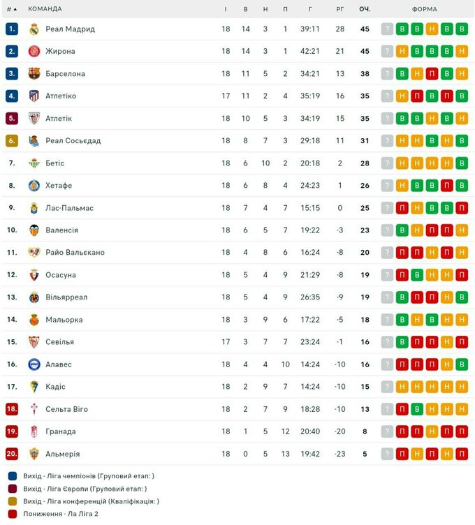 Завдяки цій перемозі «Реал» завершив 2023 рік на першому рядку турнірної таблиці чемпіонату Іспанії. У королівського клубу 45 очок після 18 турів. Стільки ж і у «Жирони», яка раніше зіграла внічию з «Бетісом», але за результатом особистої зустрічі (3:0) 1-ше місце поки що саме у підопічних Карло Анчелотті.