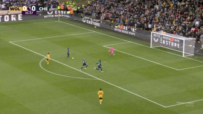 На 32-й хвилині матчу через помилку футболіста «вовків» гравці «Челсі» вийшли втрьох на воротаря суперника. Рахім Стерлінг вирішив самотужки завершити атаку, але пробив у голкіпера. Коментатор матчу красномовно описав момент: «Пас віддай, Господи!»