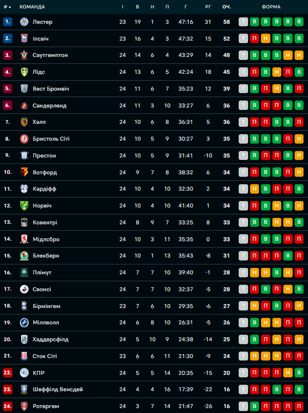 Чемпіоншип. 24-й тур. 26 грудня.