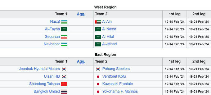 Ліга чемпіонів Азії 2023/24. Жеребкування 1/8 фіналу
