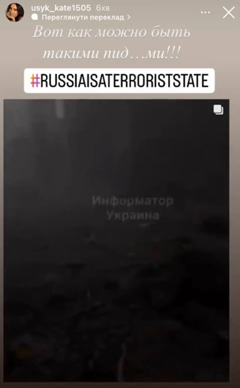 «Ось як можна бути такими під####ми. росія терористична держава», – написала Усик в інстаграмі.
