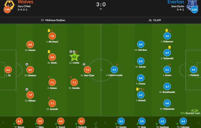 Найкращим гравцем матчу названо вінгера «Вулверхемптона» Матеуса Кунью (8.63), на рахунку якого дві результативні дії за системою гол+пас.