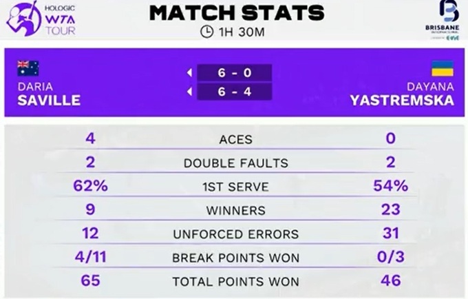 Dashing through the first round 💨@Daria_gav storms past Yastremska in straight sets to move on ⚡️#BrisbaneTennis pic.twitter.com/dBLMDUwzJi