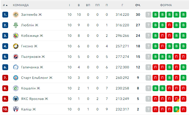 Львівська команда у чемпіонаті Польщі посідає 6-те місце, маючи 12 очок