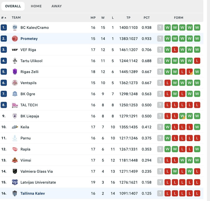 Натомість «Прометей» провів 15 поєдинків – здобув 14 перемог та зазнав однієї поразки. «Титани» посідають у турнірній таблиці друге місце, поступаючись лише «Калеву-Крамо», який наразі провів більше поєдинків.