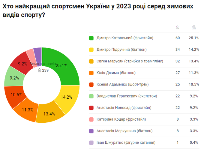 Підсумки голосування за найкращого спортсмена України 2023 в зимових видах спорту