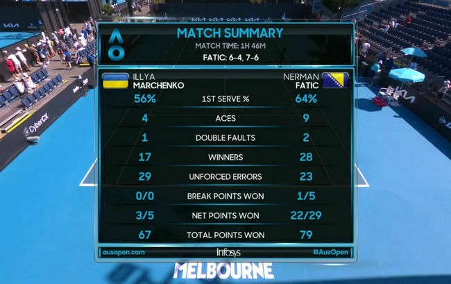 Український тенісист Ілля Марченко (№218 ATP) вилетів після першого раунду кваліфікації Відкритого чемпіонату Австралії з тенісу.