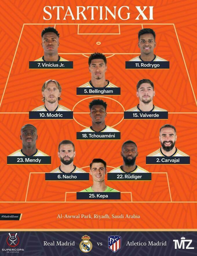 «Реал»: Кепа, Менді (Камавінга, 81), Начо, Рюдігер, Карвахаль, Тчуамені (Браім, 81), Модріч (Кроос, 67), Вальверде (Арда Гюлер, 112), Беллінгем, Родріго (Себальос, 106), Вінісіус Жуніор (Хоселу, 106).