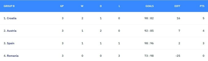 Група В: Іспанія, Австрія, Хорватія, Румунія