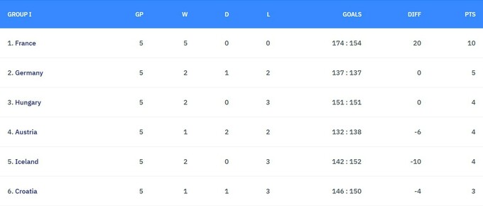 Група 1: Франція, Німеччина, Угорщина, Австрія, Ісландія, Хорватія
