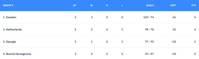Група Е: Швеція, Нідерланди, Боснія та Герцеговина, Грузія