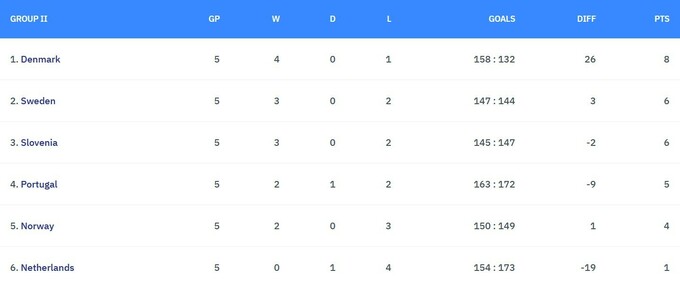 Група 2: Данія, Швеція, Словенія, Португалія, Норвегія, Нідерланди