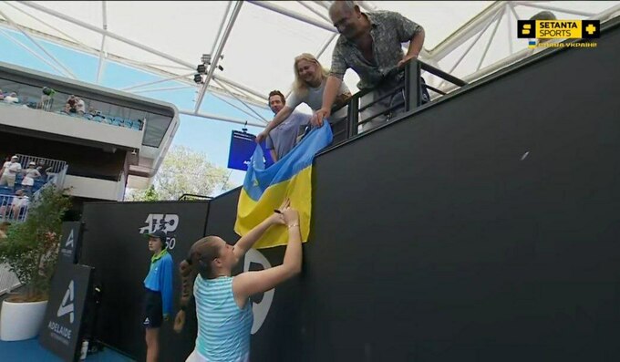 Після завершення поєдинку з Костюк Остапенко підійшла до українських фанатів та підписала для них прапор України, перекинувшись парою слів.