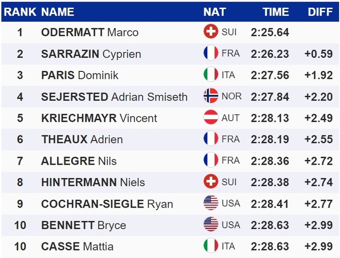 Швейцарський гірськолижник Марко Одерматт виграв один із найпрестижніших стартів сезону – швидкісний спуск у Венгені на легендарній трасі «Лауберхорн». Він випередив переможця вчорашнього супергіганта Сіпрієна Сарразена та італійця Домініка Паріса.