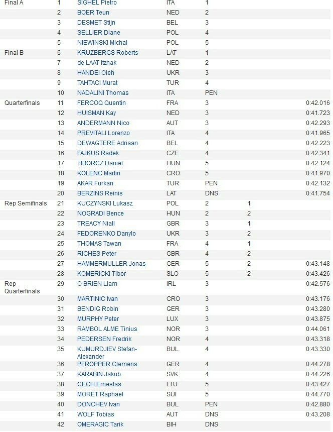 У фіналі Сігель не дуже добре стартував, але на дистанції зробив ривок та фінішував першим. Друге місце посів Тен Бур із Нідерландів, а третім по фотофінішу став бельгійський спортсмен Стейн Десмет.