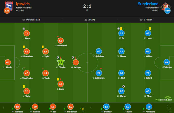 Оцінки WhoScored за матч Іпсвіч – Сандерленд – 2:1