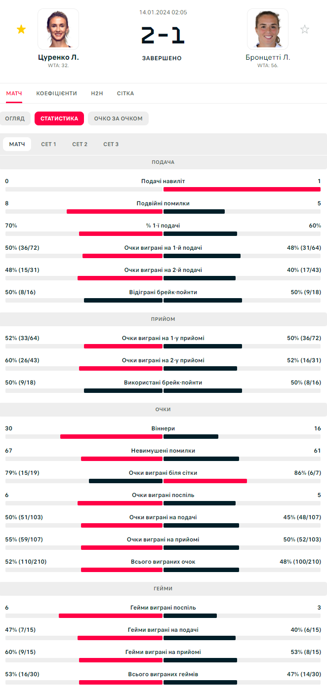 Це була друга зустріч тенісисток, українка виграла обидва поєдинки.