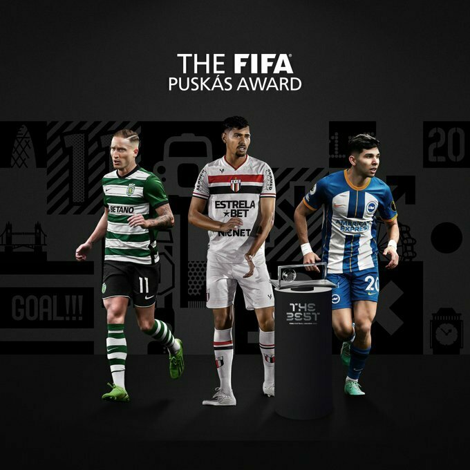 У список кандидатів на премію Пушкаша за найкращий гол 2023 року входять: Хуліо Енсісо з Брайтона, Нуну Сантуш зі Спортингу та Гільєрме Мадруга з бразильського Ботафого.