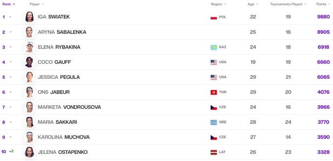 Рейтинг WTA. Прогрес Костюк, Ястремської, Снігур і Стародубцевої
