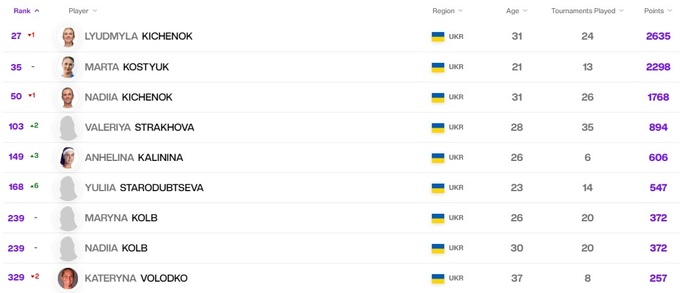 Якщо поглянути на зміни в українок, то Еліна Світоліна залишилася на своєму місці, Ангеліна Калініна втратила 2 позиції, Леся Цуренко опустилася на одну. Марта Костюк, Даяна Ястремська, Дар'я Снігур та Юлія Стародубцева піднялися на кілька місць. Також трохи додали Анастасія Соболєва та Вероніка Подрез, Катаріна Завацька одну сходинку втратила.