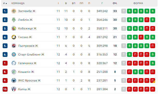 Галичанка програла матч чемпіонату Польщі з різницею у 8 м'ячів