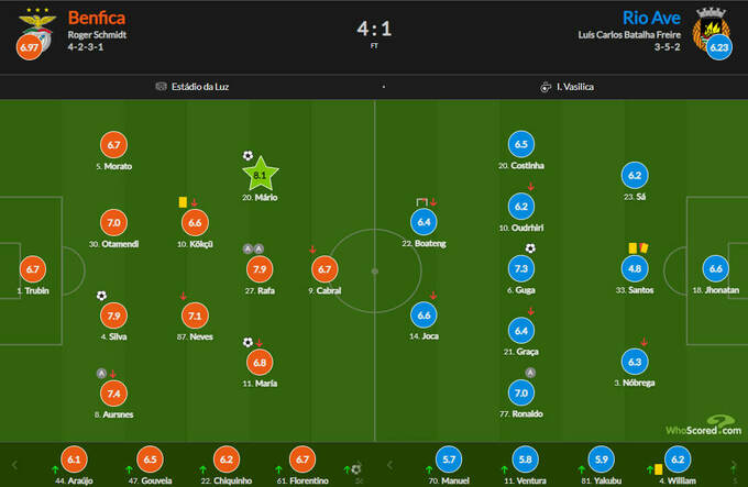 Оцінки WhoScored за матч Бенфіка – Ріу Аве – 4:1