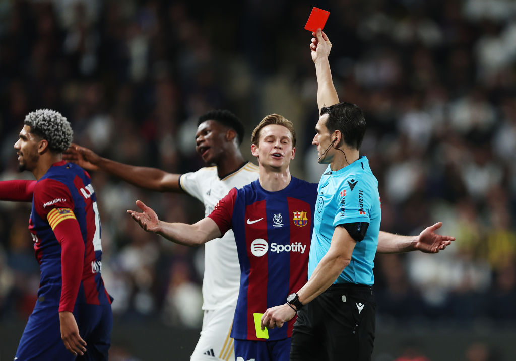 Після перерви каталонці знову взяли м'яч під контроль, але знайти підходи до штрафного майданчика суперників не могли. А «галактикос» відповідали доволі гострими контратаками, які давали чимало проблем обороні номінальних гостей. Вплинути на гру тренерський штаб «Барселони» спробував за рахунок потрійної заміни: на поле вийшли Лопес, Фелікс та Ямал. Але за кілька хвилин ситуація для «блаугранас» зовсім ускладнилася. Кунде невдало вибив м'яч і вийшла скидка на Родріго, який завдав влучного удару. А незабаром каталонці взагалі залишилися в меншості: Араухо агресивно зіграв проти Вінісіуса і отримав другу жовту картку.