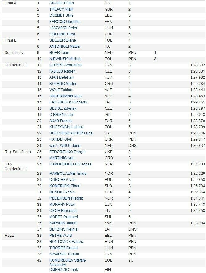 Лідер збірної України Олег Гандей потрапив в один чвертьфінальний забіг із Сігелем і саме на італійці заробив пенальті, хоч і вельми сумнівний. У результаті він класифікований 23-м. Ще один українець Данило Федоренко посів 25-те місце у підсумковій класифікації.