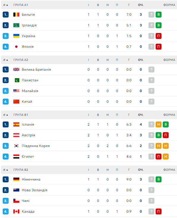 В іншій зустрічі групи Бельгія розгромила Японію з рахунком 5:0. У другому турі 15 січня о 18:00 збірна України зіграє проти команди Японії.