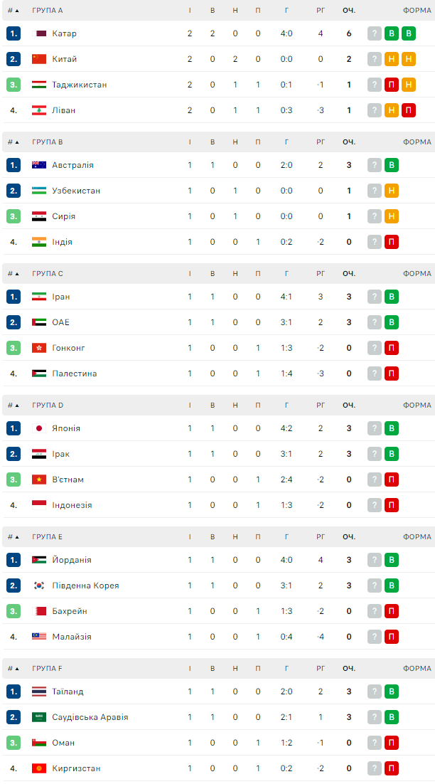 18 січня проходять 3 матчі Кубка Азії: