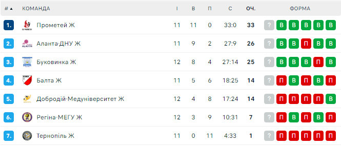 Турнірна таблиця