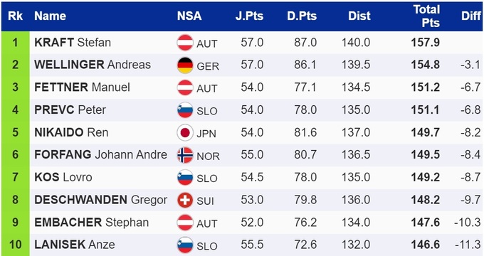 Перемогу в кваліфікації здобув лідер Кубка світу Штефан Крафт, який випередив німця Андреаса Веллінгера і партнера по команді Мануеля Феттнера.