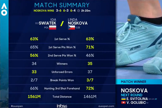 Лінда Носкова (Чехія) – Іга Свьонтек (Польща) – 3:6, 6:3, 6:4