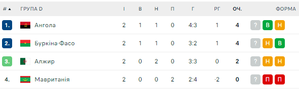 Ситуація у групі після двох турів: Ангола та Буркіна-Фасо (по 4 очки), Алжир (2), Мавританія (0).
