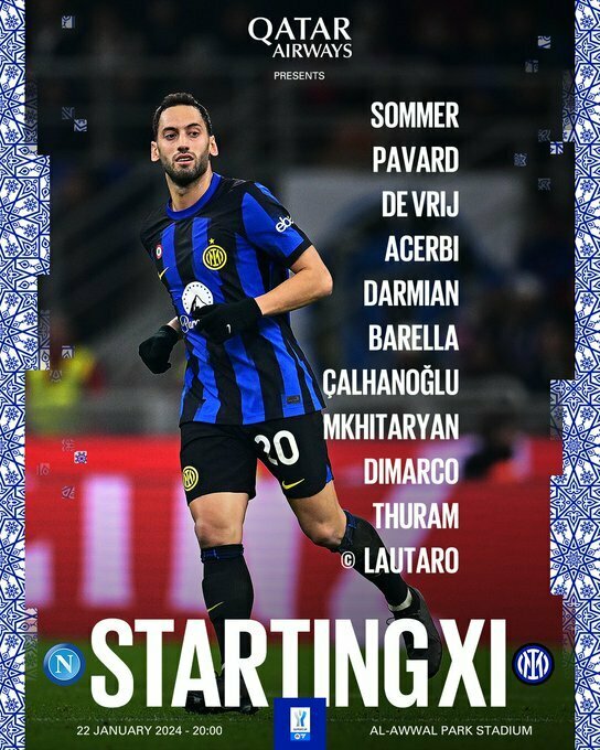 «Інтер»: Зоммер – Ачербі, де Врей (Аугусто, 62), Павар – Дімарко (Арнаутович, 81), Мхітарян, Чалханоглу, Барелла (Фраттезі, 63), Дарміан – Мартінес (Біссек, 90+3), Тюрам (Санчес, 81).