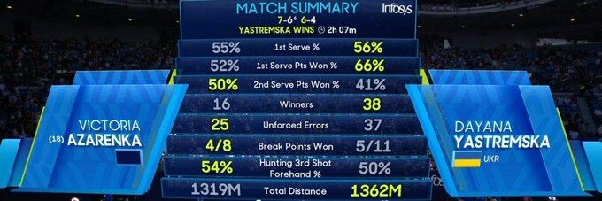 A tremendous display from @D_Yastremska, delivering her best-ever result at a Grand Slam with a 7-6(6), 6-4 win over [18] Azarenka!#AusOpen pic.twitter.com/0B4em5Az6Z