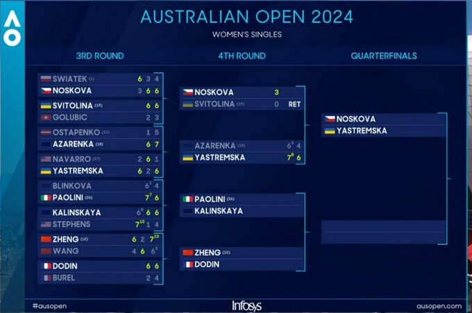 У чвертьфіналі Australian Open Даяна зіграє проти Лінди Носкової, яка раніше провела лише 3 гейми проти Еліни Світоліної, після чого перша ракетка України знялася з поєдинку через біль у спині.