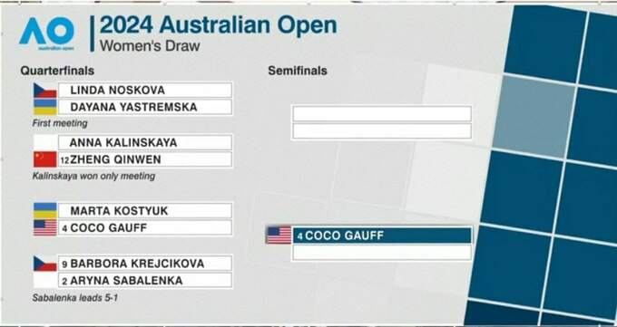 У півфіналі Australian Open Коко зіграє проти переможниці матчу Барбора Крейчикова – Аріна Соболенко.
