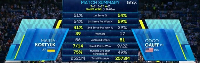 У другому сеті Гофф подавала на матч за 5:3. Костюк зуміла зробити камбек, перевела гру на тай-брейк та взяла його 7:2. На третю партію сил та емоцій вже не вистачило.