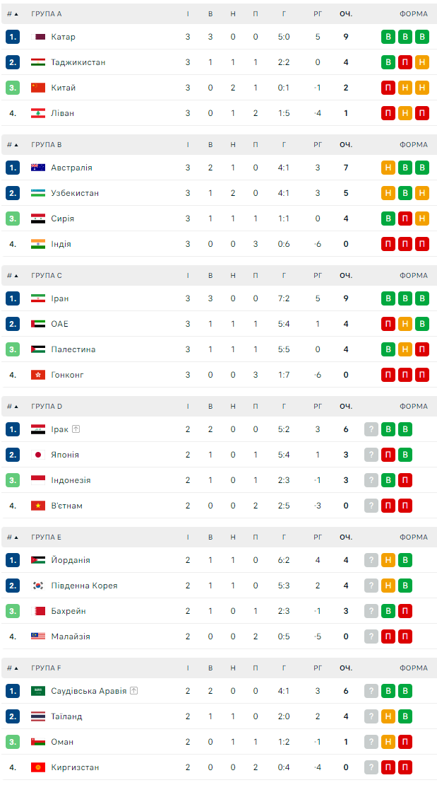 Турнірні таблиці
