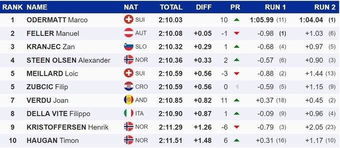 Лідер загального заліку в першому заїзді припустився грубої помилки і йшов тільки 11-м, але в другому заїзді пішов у контратаку і в підсумку обійшов австрійця Мануеля Феллера і словенця Жана Краньєца.