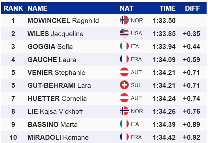 Норвезька гірськолижниця Рагнхільд Мовінкель виграла другий швидкісний спуск на етапі Кубка світу в італійській Кортіні д'Ампеццо. Для неї це перша перемога в нинішньому сезоні.
